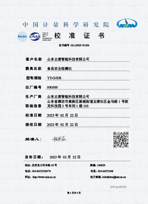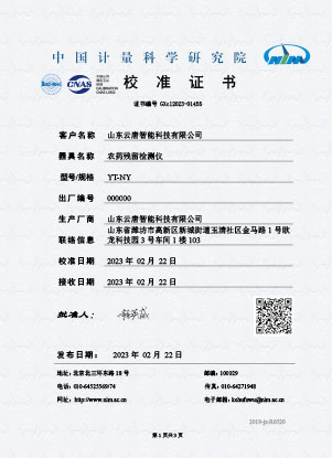 農(nóng)殘校準證書